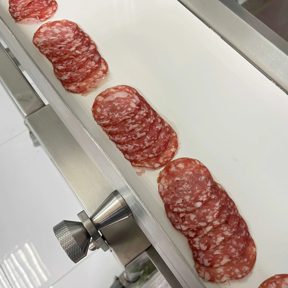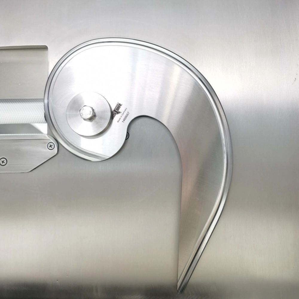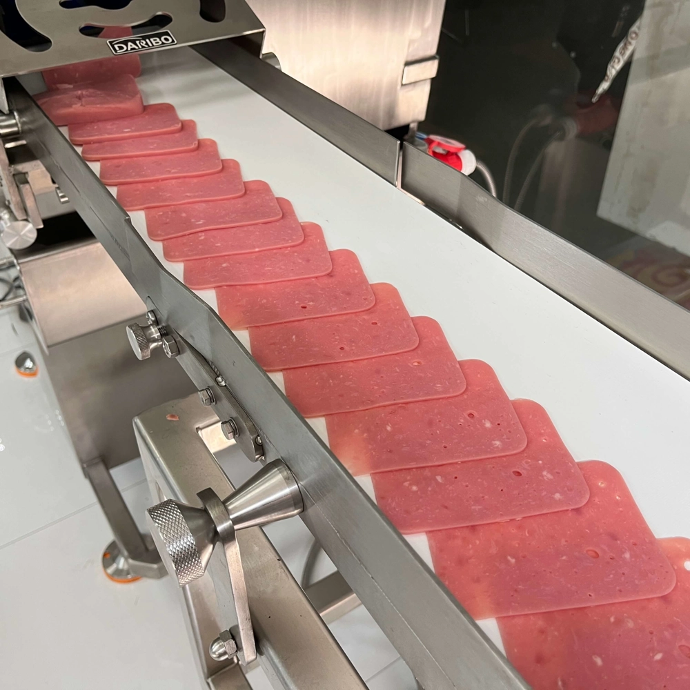 达瑞宝冷鲜肉切片机采用国际先进的剪刀式切断方式,选配锋利的德国刀具,可切出完美的薄片效果,具有分份和叠放功能,可切鲜肉,熟肉,水产等。