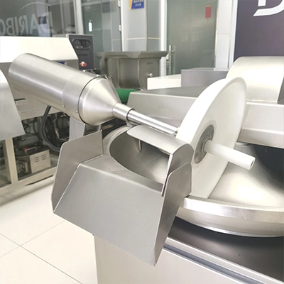 达瑞宝斩拌机通过斩刀高速旋转的斩切作用,将肉块、碎肉、脂肪等主要原料斩切成肉馅或肉泥,斩拌机的刀速、锅速、斩刀与斩锅的间隙达到合理的组合,从而减少物料发热量、细度好,大程度的提高了肉制品的乳化效果,保持了馅料的天然色泽、弹性、出品率和产品的保质期。斩拌机型号齐全,操作方便,可适应不同的原料斩切需求。