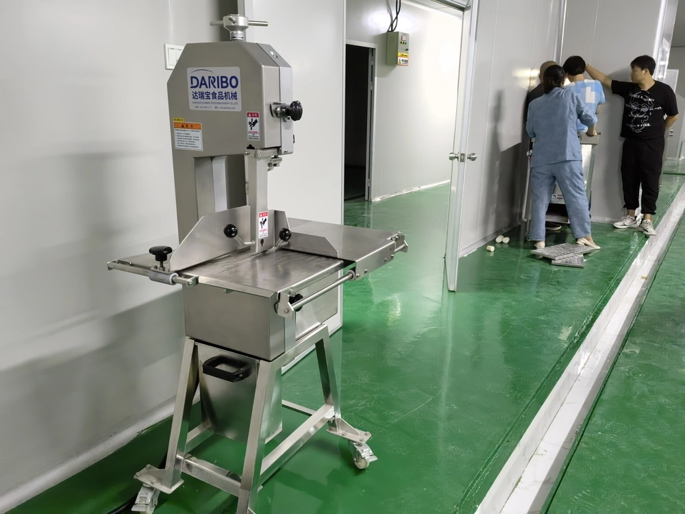 佛山肉类加工车间,肋排切块,锯切成条,真空包装