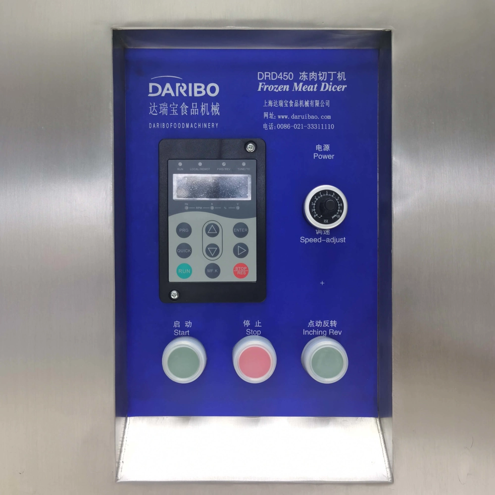 达瑞宝冻肉三维切丁机可将-5℃左右的冻肉切成片、条、丁。切好的产品由于仍然在冻结状态。